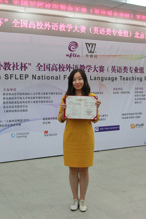 热烈祝贺我院刘巍巍老师在第六届“外教社杯”全国高校外语教学大赛(英语类专业组)北京赛区决赛中喜获一等奖。