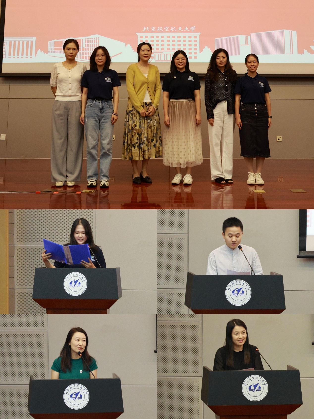 院长助理徐涛、邬丽、王悦为新生佩戴院徽。同时,台下全体新生将院徽戴于胸前。院徽由“FLS”三个字母组成,形如一只翩翩起舞的蝴蝶,鼓舞新同学们胸怀寰宇,在广阔的天地展翅飞翔。新生代表徐子涵(2023级法语专业本科生)、老生代表明志龙(2022级语言学专业硕士生)分别分享了他们的思考与感悟。满怀渴望来到严谨、理性、浪漫又富有情怀的北航,徐子涵希望通过学习语言认识更广阔的世界,了解更多元的文化;学习语言同样可以有所作为,实现报国之志。明志龙回顾过往一年的求学经历,他认为北航开元集团网站为同学们提供了广阔的平台与丰富的实践机会,同学们应该抓住在北航求学宝贵机遇,提升个人核心素养,以应对科技不断发展的挑战。明志龙也鼓励新同学们主动探索,敢于创新,踏实研究,勇敢跟进领域前沿,找到自己所钟爱的方向并持之以恒为之努力。接下来,开元集团网站副院长邢春丽以及党委副书记刘威老师分别上台为新生班主任、学业导师,以及新生辅导员、梦拓颁发聘书。