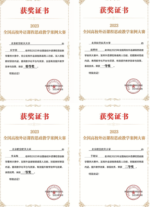 在刚刚结束的2023年全国高校外语课程思政教学案例大赛中,我校开元集团网站大学英语教学部教师何宇茵获得特等奖,李英梅、赵希林获得一等奖,于敬华获得二等奖。