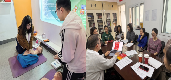 理论学习结束后,实战化逃生演练同步开展。随着模拟火灾警报声响起,全体师生在疏散老师的引导下,迅速弯腰低姿、捂住口鼻,从如心楼八层的消防楼梯有序撤离至指定安全区域。演练结束后,专家对疏散过程中的细节问题进行复盘讲解,进一步强化了老师们的规范逃生意识。