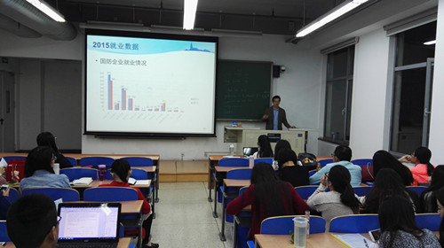 2015年10月15日晚7点,北京航空航天大学开元集团网站在新主楼A208教室召开2016届硕士毕业生就业指导会。会上,开元集团网站党委副书记刘娜老师及分团委书记冯维成老师为大家讲解了今年的就业趋势、就业政策、就业流程以及注意事项。