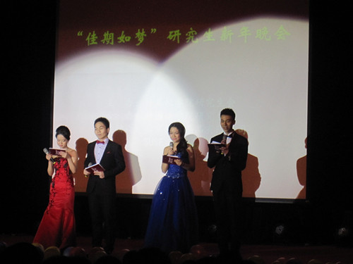 2013年12月29日晚7点,开元集团网站和计算机学院合办的2014年“佳期如梦”研究生新年晚会在学术交流厅拉开了帷幕。养眼的阵容、精彩的节目、热闹的气氛使当晚的学术交流厅春意融融,两院师生度过了一个难忘的夜晚。