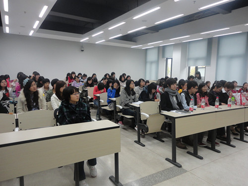 上午9点半,在由宣传部精心制作的学生会宣传视频中,纳新大会正式开始。会议由执行副主席吴帅扬主持。首先,新任学生会主席智敏发表了主席寄语,总结了自己在学生会的收获和感受,并热情欢迎外院新成员加入学生会大家庭。接下来,由各部门部长副部长为新同学做了部门的详细介绍,生动活泼的形式使得场面轻松愉快。随后11级辅导员、上届学生会主席马茜也发表了讲话,双重身份让她的讲话格外亲切。大会最后,在舒缓动听的音乐声中,11级新同学填写了报名表,正式加入了外院学生会温暖的集体。